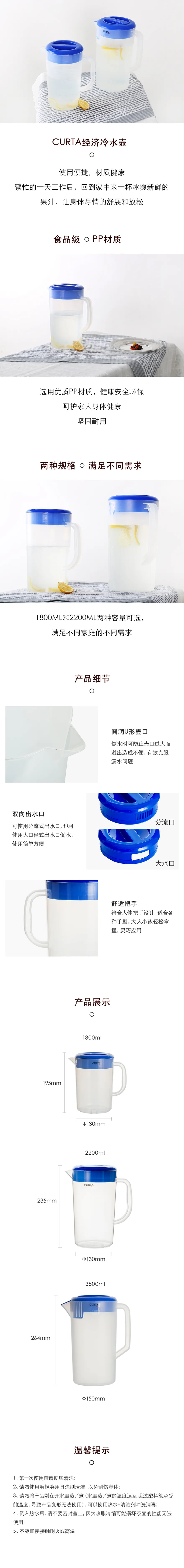 PP冷水壺(1.8L-藍色蓋)